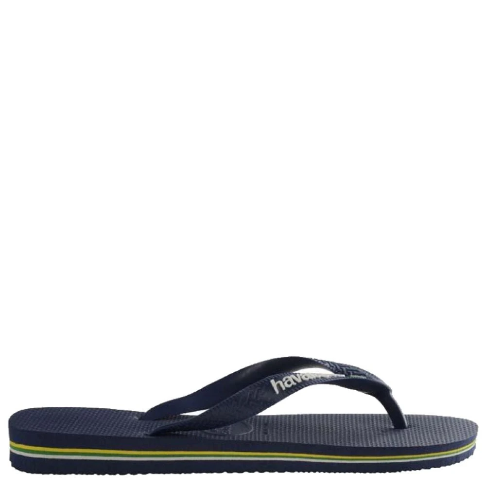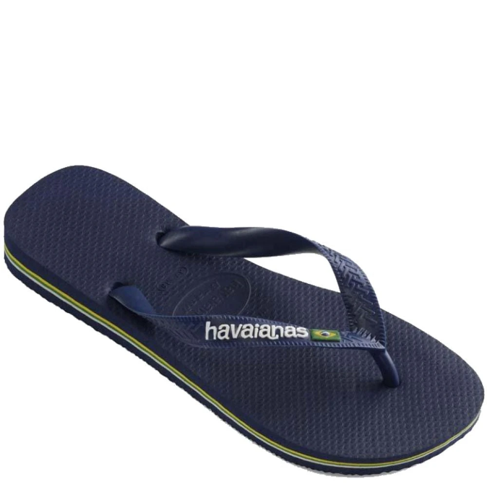 Havaianas Men’s Brazil Flip Flop in Navy with a twist! Bicolored straps and daring new color combos let you mix up your beach style. A contrast logo and Brazilian flag on the straps complete the look while Havaianas’ signature sole ensures feet stay comfy from sunrise to sunset and beyond.