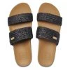 Cushioned footbed with textured rice pattern and rubber flip flop sole