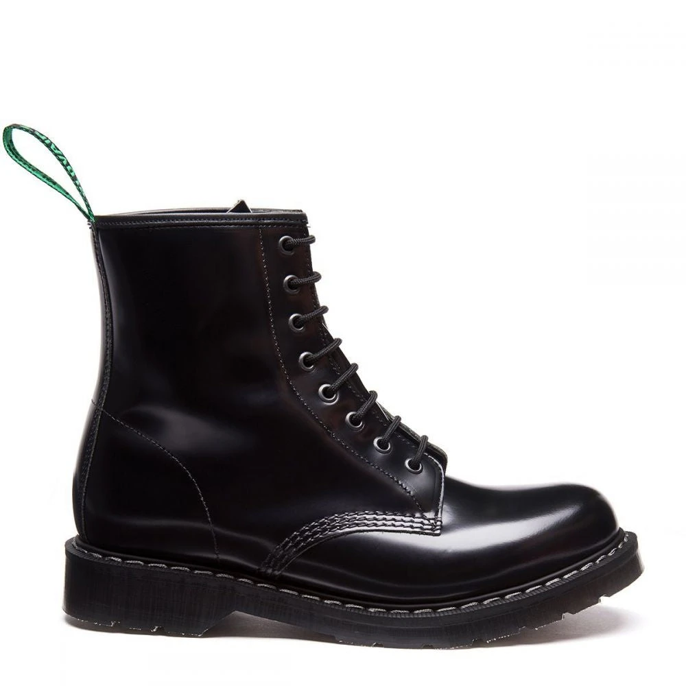 British made, the Solovair 8 Eye Derby Boot in Black Hi-Shine is amongst the best quality footwear in the world. Combining over 130 years of traditional craftsmanship and tooling while using the latest technology and materials.