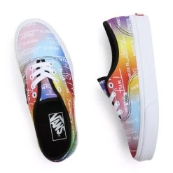 “Off The Wall” Together. This collection was designed to support a more equal and inclusive society, celebrate the LGBTQ+ community, and promote free expression. In recognition of Pride celebrations worldwide, the Pride Authentic incorporates a kaleidoscope of color with bold expressions and a Vans twist on all the colors that represent this vibrant community. Constructed with a simple low top textile upper, the Pride Authentic features an allover “Pride is . . .” graphic with words and handwriting taken directly from our internal LGBTQ+ community. We’ve also left plenty of open spaces, encouraging you to embrace your own expression and fill in the blanks with what Pride means to you.